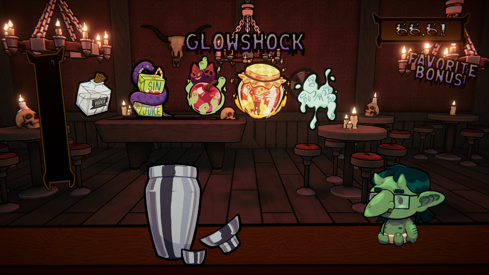 As a underworld bartender, your mission is to satisfy the unquenchable thirst of wretched demons with your wicked cocktails. Spin the wheel, watch it land on a cursed recipe, and brace yourself.
