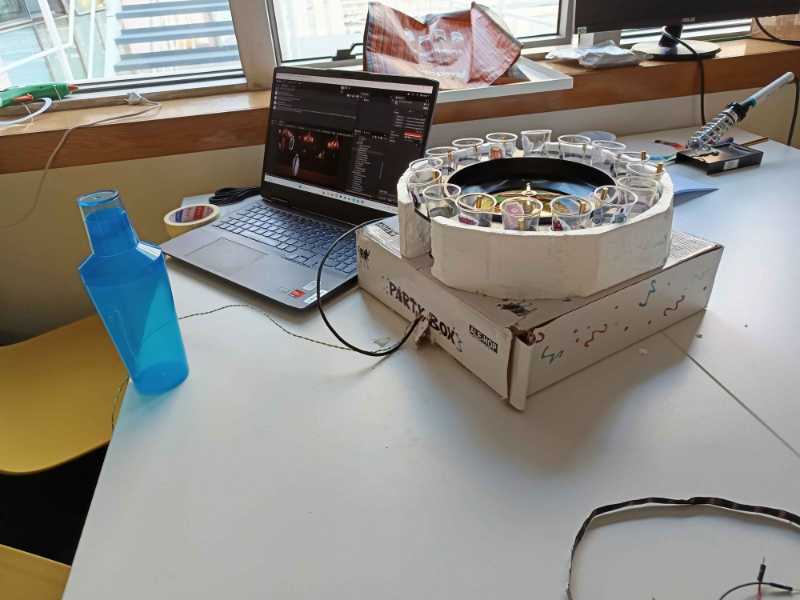 - Pour the ingredients with the shot cups;